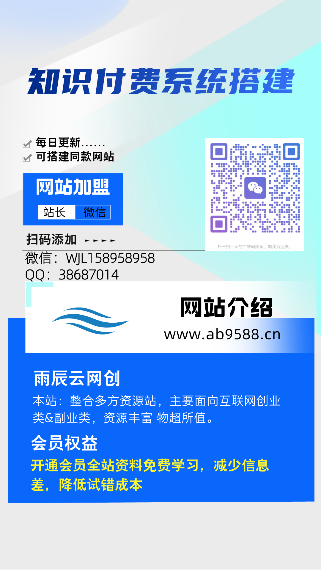加盟XXX网创,加盟搭建同款知识付费资源网站,实现长期稳定被动收入~